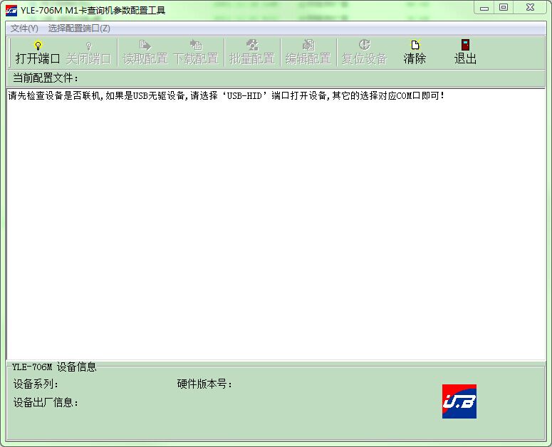 软件说明:该配置工具用来配置YLE-706MU的读卡参数。